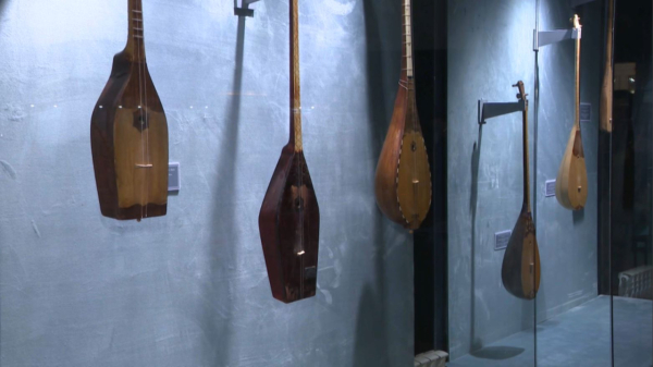 - Көрменің тағы бір ерекшелігі... Біздің музей атақты тұлғалардың домбырасының көшірмесін жасау туралы бір ерекше жобаны қолға алған болатын. Осы көшірмелер ұлы Абайдың домбырасының көшірмесі, Дина апамыздың домбырасының көшірмесі, Махамбет Өтемісұлының, Сүгір Әлиұлының домбыраларының көшірмелері де осы көрменің орталық негізгі бөлігінде тұр.