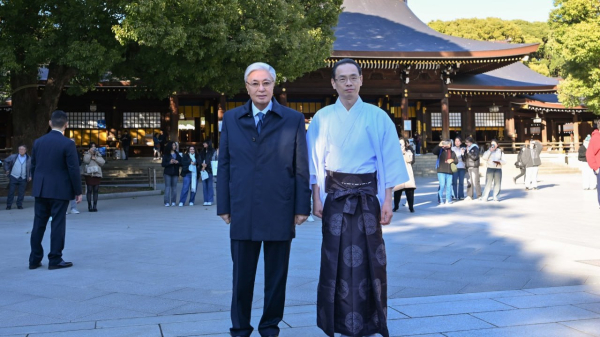Мемлекет басшысы Жапонияға ресми сапары барысында Токиодағы Мейджи Джингу синто ғибадатханасына барды.