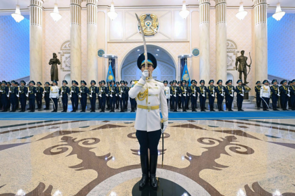 Содан соң Құрмет қарауылының бастығы рапорт беріп, екі елдің әнұрандары орындалды.