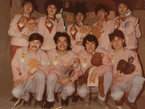 Жаңадан құрылған театрға Орынбор өнер училищесі мен Алматы цирк-эстрадалық студиясының түлектері арнайы шақырылды. Алғашқы директоры болып Біләл Әлімбеков, бас режиссері Марк Александрович Койфман тағайындалды. Бірден екі труппа жасақталып, спектакльдер қазақ-орыс тілдерінде ұсынылды. Мұның өзі көрермен санын арттыруға мүмкіндік берді. 1986 жылы Шымкент қуыршақ театрында еңбек еткен тәжірибелі әртістер Шәріп Ұзақов пен Галина Исинеева арнайы шақыртумен ұжымға келіп қосылды. Шәріп Қасымжанұлы Ресейдің Ленинград қаласында білімін жетілдіріп келген соң 1991 жылы режиссёрлік тізгінді қолға алды. Ол балабақша балдырғандары мен бастауыш сынып оқушыларын ізгілікке баулитын қойылымдар шығаруға күш салды. Сонымен бірге қазақ халқының аңыз-ертегілеріне, тәрбиелік мәні бар спектакльдерге орын берді. Бұл дәстүрді кейін режиссёр Жасұлан Түсіпбеков жалғастырды. Әртіс В.Попов, реквизитор Г.Кабылова, тігінші О. Федосенко қуыршақ труппасы өнерінің дамуына зор үлес қосты. Ұжымды өркендету жолында ұзақ жыл табан аудармай еңбек етіп, бүгінде өмірден өткен әртістер В.Попов пен Г.Исинееваны, қазір өзге өңірлерде жемісті еңбек етіп жүрген режиссёрлер Ш. Ұзақов пен Ж.Түсіпбековті ұжым мүшелері үнемі сүйіспеншілікпен еске алады.