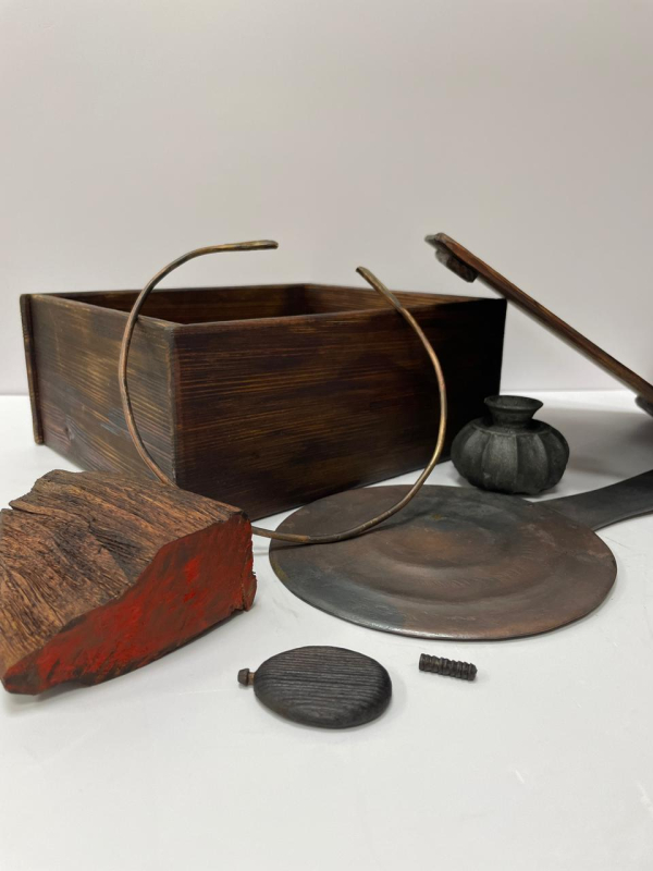 Қобдишаның бұрышында, айнаның оң жағында тағы бір ерекше жәдігер – миниатюра ыдыс табылды. Бұл бірегей артефакт қандай материалдан жасалғаны белгісіз. Белгілісі – әлдебір органикалық заттан жасалған болуы мүмкін, оның бүгінге дейін сақталуы ғажап құбылыс.